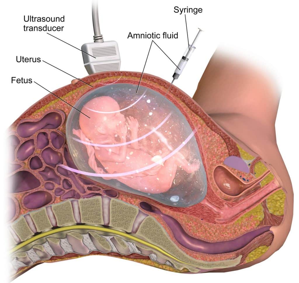 Amniocentesis - Podcast Version TeachMeObGyn 0:00 / 0:00 1x 0.25x 0.5x 0.75x 1x 1.25x 1.5x 1.75x 2x An amniocentesis is a procedure used to sample a small amount of amniotic fluid from around the fetus. It can be performed from 15 weeks’ gestation onwards. It is performed for similar reasons to chorionic villus sampling (CVS), which is carried out from 10 -13+6 weeks’ gestation. It is not the fluid itself which is of use, but the fetal cells that are present in the fluid. In this article, we shall look at the procedure, indications and complications of amniocentesis. By BruceBlaus (Own work) [CC BY-SA 4.0], via Wikimedia Commons Fig 1Amniocentesis, used to sample amniotic fluid Pro Feature - 3D Model You've Discovered a TeachMeObGyn Pro Feature Access our 3D Model Library Explore, cut, dissect, annotate and manipulate our 3D models to visualise anatomy in a dynamic, interactive way. Learn More Procedure First, a local anaesthetic is used to decrease pain for the mother. Under ultrasound guidance, a needle is passed through the mother’s abdominal wall and into the amniotic sac. The needle should not pass through the placenta unless absolutely necessary. A small amount of amniotic fluid is taken, and fetal cells are sent for karyotyping and/or PCR. Note: Rhesus-negative women will need Anti-D immunoglobulin after the test. Indications The most common indication for amniocentesis is a “high risk” result from a first trimester screening test, or a previous pregnancy affected by a genetic condition. The fetal cells that are obtained can be tested for various chromosomal conditions, such as Down’s syndrome, Edward’s syndrome and/or Patau’s syndrome. Therefore, the intended benefit of this procedure is diagnosis or exclusion of particular genetic diseases. Complications The potential complications of an amniocentesis are: 0.5% risk of miscarriage (RCOG). The risk is higher in a multiple pregnancy False reassurance – a “normal” result may make women feel their baby will be born completely healthy when this may not be the case. Risk of infection, as with most surgical procedures Pain from the procedure Rhesus sensitisation (see here) Increased risk of club foot Alternatives The main alternative to amniocentesis is chorionic villus sampling. This is also an invasive procedure, with its own risks. It can come to the same conclusions as amniocentesis and is typically performed earlier in the pregnancy. Nuchal translucency (measured on ultrasound) and blood tests can give the woman some information regarding the risk of Down’s syndrome, but cannot provide definitive diagnosis or reassurance. Do you think you’re ready? Take the quiz below Pro Feature - Quiz Amniocentesis Question 1 of 3 Submitting... Skip Next Rate question: You scored 0% Skipped: 0/3 More Questions Available Upgrade to TeachMeObGyn Pro Test your knowledge with a wide range of high-quality multiple-choice questions. Learn More Rate This Article