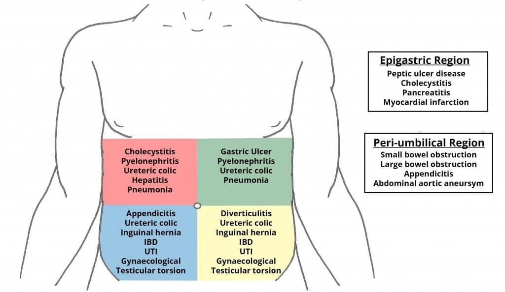 Ectopic Pregnancy - Podcast Version TeachMeObGyn 0:00 / 0:00 1x 0.25x 0.5x 0.75x 1x 1.25x 1.5x 1.75x 2x An ectopic pregnancy is any pregnancy which is implanted at a site outside of the uterine cavity. In the UK, 1 in 80-90 pregnancies are ectopic. [NHS UK] The most common sites include the ampulla and isthmus of the fallopian tube. Less commonly, the ovaries, cervix or peritoneal cavity can be involved. In this article, we shall look at the risk factors, clinical features and management of an ectopic pregnancy. By BruceBlaus [CC BY-SA 4.0], via Wikimedia Commons Fig 1An ectopic pregnancy is one that is implanted outside the uterine cavity. Pro Feature - 3D Model You've Discovered a TeachMeObGyn Pro Feature Access our 3D Model Library Explore, cut, dissect, annotate and manipulate our 3D models to visualise anatomy in a dynamic, interactive way. Learn More Risk Factors The risk factors for an ectopic pregnancy are shown in Table 1. Note: The use of contraception actually reduces the rate of pregnancy. However, if there is failure of the contraception types below, the pregnancy is more likely to be ectopic. Past Medical History Contraception Iatrogenic Previous ectopic pregnancy Pelvic inflammatory disease (due to adhesion formation) Endometriosis (adhesion formation) Intrauterine device or intrauterine system Progesterone oral contraceptive or implant (due to fallopian tube ciliary dysmotility) Tubal ligation or occlusion Pelvic surgery – especially tubal surgery (reversal of sterilisation) Assisted reproduction i.e. embryo transfer in IVF Clinical Features The leading symptom of ectopic pregnancy is pain. Patients commonly present with lower abdominal/pelvic pain, with or without vaginal bleeding. There also can be a history of amenorrhoea. Note: Vaginal bleeding in ectopic pregnancy is the result of decidual breakdown in the uterine cavity due to suboptimal β-HCG levels. Bleeding from a ruptured ectopic pregnancy is usually intra-abdominal, not vaginal. Other symptoms include: Shoulder tip pain – the irritation of the diaphragm by blood in the peritoneal cavity leads to referred shoulder tip pain. This is because the diaphragm and the supraclavicular nerves (which innervate the shoulder tip) share the C3-C5 dermatomes. Vaginal discharge – brown in colour, classically described as being akin to prune juice. This is the result of the decidua breaking down. On examination, the patient may have localised abdominal tenderness, with vaginal examination revealing cervical excitation and/or adnexal tenderness. If the ectopic pregnancy has ruptured, the patient may also be haemodynamically unstable (pallor, increased capillary refill time, tachycardia, hypotension), with signs of peritonitis (abdominal rebound tenderness and guarding). Vaginal examination may reveal fullness in the pouch of Douglas. Differential Diagnosis An ectopic pregnancy should always be considered in cases of abdominal pain in a woman of reproductive age. However, its clinical features are largely non-specific, and can be seen in other conditions: Miscarriage Ovarian cyst accident (this refers to cyst haemorrhage, torsion or rupture) Acute pelvic inflammatory disease Urinary tract infection Appendicitis Diverticulitis By TeachMeSeries Ltd (2026) Fig 2Differential diagnoses for pain in each region of the abdomen. Investigations A pregnancy test (urine β-HCG) is the most important initial investigation for an ectopic pregnancy. If positive, a pelvic USS should be performed – this can determine the presence or absence of an intrauterine (‘normal’) pregnancy. If an intrauterine pregnancy is not seen on transabdominal USS, a transvaginal scan should be offered. If a pregnancy cannot be identified on ultrasound scan (but β-HCG is positive), this is termed a pregnancy of unknown location. It has three main differential diagnoses; (i) very early intrauterine pregnancy; (ii) miscarriage; and (iii) ectopic pregnancy. In this situation, a serum β-HCG should be taken: If the initial β-HCG level is >1500 iU (discriminatory level), and there is no intrauterine pregnancy on transvaginal ultrasound, then this should be considered an ectopic pregnancy until proven otherwise, and a diagnostic laparoscopy should be offered. If the initial β-HCG level is <1500 iU and the patient is stable, a further blood test can be taken 48 hours later: In a viable pregnancy, HCG level would be expected to double every 48 hours. In a miscarriage, HCG level would be expected to halve every 48 hours Where the increase or drop in the rate of change is outside these limits, an ectopic pregnancy cannot be excluded and the patient should be managed accordingly. Other investigations should be used as appropriate to rule in/out the other differential diagnoses – e.g. urinalysis for urinary tract infection. By Häggström, Mikael. "Medical gallery of Mikael Häggström 2014". Wikiversity Journal of Medicine [CC0] Fig 3Ectopic pregnancy identified by transvaginal ultrasound, in a woman with an intrauterine contraceptive device (IUD). Management Any patient with a suspected ectopic pregnancy should be admitted to hospital. If unstable, an A-E approach should be used to resuscitate the patient. This may include the use of blood products if there are signs of haemodynamic instability. The definitive management of ectopic pregnancy can be medical, surgical, or conservative. Medical Medical management of an ectopic pregnancy is with IM methotrexate. It is an anti-folate cytotoxic agent that disrupts the folate dependent cell division of the developing fetus. The pregnancy will then gradually resolve. The serum β-HCG level is monitored regularly to ensure the level is declining (by >15% in day 4-5). If there isn’t such a decline, a repeat dose is administered. Medical management is offered to patients who are stable, with well controlled pain and β-HCG levels <1500 iU/ml. The ectopic should be unruptured, and without a visible heartbeat. The patien