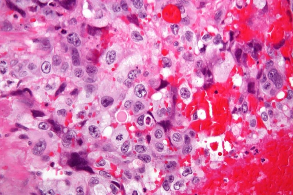 Gestational Trophoblastic Disease - Podcast Version TeachMeObGyn 0:00 / 0:00 1x 0.25x 0.5x 0.75x 1x 1.25x 1.5x 1.75x 2x Gestational trophoblastic disease (GTD) is a term used to describe a group of pregnancy-related tumours. They can be divided into two main groups: Pre-malignant conditions (more common) – such as partial molar pregnancy and complete molar pregnancy. Malignant conditions (rarer) – such as invasive mole, choriocarcinoma, placental trophoblastic site tumour and epithelioid trophoblastic tumour. In this article we will discuss the risk factors, clinical features and management of gestational trophoblastic disease. Pathophysiology Molar Pregnancies In normal conception, the fetus is formed from 23 maternal chromosomes and 23 paternal chromosomes. A molar pregnancy arises from an abnormality in chromosomal number during fertilisation: Partial molar pregnancy – where one ovum with 23 chromosomes is fertilised by two sperm, each with 23 chromosomes. This produces cells with 69 chromosomes (triploidy). Note: A partial mole may exist with a viable fetus. The fetus and placenta are usually triploid, however mosaicism can exist where the fetus has a normal karyotype and the triploidy is confined to the placenta. Complete molar pregnancy – where one ovum without any chromosomes is fertilised by one sperm which duplicates, or (less commonly) two different sperm. This leads to 46 chromosomes of paternal origin alone. These tumours are usually benign, but can become malignant – invading into the uterine myometrium, and disseminating around the body. These are known as invasive moles. Other Types of Gestational Trophoblastic Disease There are three main other forms of gestational trophoblastic disease: Choriocarcinoma – a malignancy of the trophoblastic cells of the placenta. It commonly, but not exclusively, co-exists with a molar pregnancy. This type of GTT characteristically metastasises to the lungs. Placental site trophoblastic tumour – a malignancy of the intermediate trophoblasts, which are normally responsible for anchoring the placenta to the uterus. They can occur after a normal pregnancy (most common), a molar pregnancy or a miscarriage. Epithelioid trophoblastic tumour – a malignancy of the trophoblastic placental cells, which can be very difficult to distinguish from choriocarcinoma. It mimics the cytological features of squamous cell carcinoma. By Nephron [CC BY-SA 3.0], via Wikimedia Commons Fig 1High magnification image of choriocarcinoma. The cell population consists of cytotrophoblasts and syncytiotrophoblastics Risk Factors The major risk factors for gestational trophoblastic disease are: Maternal age <20 or >35 Previous gestational trophoblastic disease (this risk is not decreased by a change of partner) Previous miscarriage Use of the oral contraceptive pill Clinical Features Molar pregnancies commonly present with vaginal bleeding and abdominal pain early in pregnancy. On examination, the uterus can be larger than expected for gestation, and of a soft, boggy consistency. Occasionally, molar vesicles can shed per vagina. The diagnosis is usually made by ultrasound. However, if undiagnosed, later symptoms include: Hyperemesis – because there is an increased titre of B-hCG which is thought to be linked to nausea in pregnancy. Hyperthyroidism – gestational thyrotoxicosis due to stimulation of the thyroid by high HCG levels. Anaemia Later in pregnancy, a ‘large for dates’ uterus may be noted on examination. Investigations The most common investigations in the assessment of suspected GTD involve B-hCG measurements, ultrasound, and histological examination: Urine B-hCG – typically measured in cases of persistent post-partum bleeding. Note: any urinary pregnancy test will remain positive for a number of weeks following delivery as B-hCG is cleared gradually. Blood B-hCG levels – markedly elevated at diagnosis, and also used in the monitoring of gestational trophoblastic disease. Ultrasound Scan – a complete mole has a granular or snowstorm appearance with a central heterogeneous mass and surrounding multiple cystic areas/vesicles. However, this is not diagnostic of other forms of GTD – as partial moles may not have this distinctive ultrasound appearance. Histological examination of the products of conception – this is performed post-treatment on molar pregnancies, and all non-viable pregnancies to confirm diagnosis and plan follow up. Where a partial mole is suspected and the fetus is viable, if patients opt to continue the pregnancy, placental histology should be performed after delivery. In cases where metastatic spread is suspected, staging investigations are required. This may include MRI, CT chest-abdomen-pelvis and/or pelvic ultrasound. 2010 Trissy Chun, MD and Eitan Dickman, MD Fig 2Complete mole on transabdominal ultrasound of the pelvis. The uterus (arrow) is shown with multiple cystic areas within an enlarged echogenic endometrial cavity (arrowhead). Management In the UK, women diagnosed with gestational trophoblastic disease should be registered with a GTD centre for follow-up and monitoring in future pregnancies. The specific management is dependent on the exact type of tumour. Molar Pregnancy The Royal College of Obstetricians and Gynaecologists recommend suction curettage as the most effective treatment for complete moles and non-viable partial moles. There is a theoretical risk of embolisation of the trophoblastic tissue if medical management with oxytocic agents is used. However, if the partial mole is of a greater gestation with fetal development, and is not conducive to surgical evacuation, medical evacuation should be recommended – with a urinary B-hCG measurement performed 3 weeks post-treatment. In all cases, anti-D prophylaxis is recommended post-evacuation if the mother is Rhesus negative. Chemotherapy may be required after evacuation if the B-hCG level does not fall (see below). Other types of GTD In cases of mali