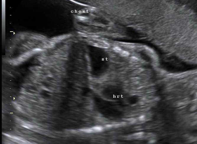 Polyhydramnios - Podcast Version TeachMeObGyn 0:00 / 0:00 1x 0.25x 0.5x 0.75x 1x 1.25x 1.5x 1.75x 2x Polyhydramnios refers to an abnormally large level of amniotic fluid during pregnancy. It is defined by an amniotic fluid index that is above the 95th centile for gestational age. In this article, we shall look at the causes, clinical assessment and management of polyhydramnios. By TeachMeSeries Ltd (2026) Fig 1Amniotic fluid centiles during pregnancy. Polyhydramnios is over the 95th centile, oligohydramnios is below the 5th centile Pathophysiology The volume of amniotic fluid increases steadily until 33 weeks of gestation. It plateaus from 33-38 weeks, and then declines – with the volume of amniotic fluid at term approximately 500ml. It is predominantly comprised of the fetal urine output, with small contributions from the placenta and some fetal secretions (e.g. respiratory, oral). The fetus breathes and swallows the amniotic fluid. It gets processed, fills the bladder and is voided, and the cycle repeats. Problems with any of the structures in this pathway can lead to either too much or too little fluid. Aetiology Polyhydramnios is idiopathic in 50-60% of cases. Where an underlying abnormality can be identified, the most common causes include: Any condition that prevents the fetus from swallowing – e.g. oesophageal atresia, CNS abnormalities, muscular dystrophies, congenital diaphragmatic hernia obstructing the oesophagus Duodenal atresia – ‘double bubble’ sign on ultrasound scan Anaemia – alloimmune disorders, viral infections Fetal hydrops Twin-to-twin transfusion syndrome Increased lung secretions – cystic adenomatoid malformation of lung Genetic or chromosomal abnormalities Maternal diabetes – especially if poorly controlled Maternal ingestion of lithium – leads to fetal diabetes insipidus Macrosomia – larger babies produce more urine. By Kevin Dufendach (Own work) [CC BY 3.0], via Wikimedia Commons Fig 2Twin to twin transfusion syndrome, a complication of a disproportionate blood supply in twin pregnancies. It is a cause of polyhydramnios. Diagnosis of Polyhydramnios The diagnosis of polyhydramnios is made via ultrasound examination. There are two ways of measuring amniotic fluid; amniotic fluid index (AFI) or maximum pool depth (MPD). They have similar diagnostic accuracy, however AFI is more commonly used. Amniotic fluid index is calculated by measuring maximum cord-free vertical pocket of fluid in four quadrants of the uterus and adding them together. Maximum pool depth is the vertical measurement in any area. Clinical Assessment Polyhydramnios is a diagnosis made via ultrasound examination. Therefore, the clinical assessment of the patient is directed at establishing any underlying cause: Examination Palpate the uterus – does it feel tense? Ultrasound Repeat measurement of liquor volume Assess fetal size Assess fetal anatomy to detect any structural causes Doppler – to detect fetal anaemia Maternal glucose tolerance test – for maternal diabetes Karyotyping (if appropriate) – especially if other structural abnormalities are detected, or if the fetus is small. Some viral infections can cause polyhydramnios. Therefore, a TORCH (Toxoplasmosis, Other (Parvovirus), Rubella, Cytomegalovirus, Hepatitis) screen should be undertaken. Maternal red cell antibodies should also be checked; in the UK this is performed routinely at 28 weeks for all pregnancies. By Dr Laughlin Dawes [CC BY 3.0], via Wikimedia Commons Fig 3Ultrasound scan of diaphragmatic hernia – a cause of polyhydramnios. The stomach (st) and heart (hrt) are both within the thorax. Management No medical intervention is required in the majority of women with polyhydramnios. If the maternal symptoms are severe (e.g breathlessness), an aminoreduction can be considered. It is associated with infection and placental abruption (due to a sudden decrease in intrauterine pressure), and is therefore not performed routinely. Indomethacin can be used to enhance water retention, and thus reduces fetal urine output. It is associated with premature closure of the ductus arteriosus and therefore should not be used beyond 32 weeks. In cases of idiopathic polyhydramnios, the baby must be examined before its first feed by a paediatrician. A nasogastric tube should be passed to ensure there is not a tracheoesophageal fistula or oesophageal atresia. Prognosis Severe and persistently unexplained polyhydramnios is associated with increased perinatal mortality. This is largely due to two factors: The likely presence of an underlying abnormality or congenital malformation. The increased incidence of preterm labour (due to over-distension of the uterus). Malpresentation (e.g. transverse lie, breech presentation) is also more likely – as the fetus has more room to move within the uterine cavity. Care must be taken at rupture of membranes, as there is a higher risk of cord prolapse. After delivery, there is a higher incidence of postpartum haemorrhage, as the uterus has to contract further to achieve haemostasis. Summary Polyhydramnios is the presence of amniotic fluid >95th centile. The main cause for this is idiopathic, but structural, viral and diabetes as causes must be investigated for. The prognosis is usually good, with only 1% of structurally normal fetuses on ultrasound having an associated congenital abnormality. Do you think you’re ready? Take the quiz below Pro Feature - Quiz Polyhydramnios Question 1 of 3 Submitting... Skip Next Rate question: You scored 0% Skipped: 0/3 More Questions Available Upgrade to TeachMeObGyn Pro Test your knowledge with a wide range of high-quality multiple-choice questions. Learn More Rate This Article