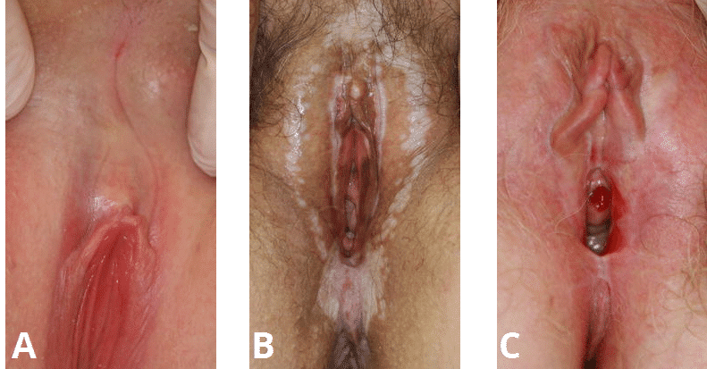 Lichen Sclerosus - Podcast Version TeachMeObGyn 0:00 / 0:00 1x 0.25x 0.5x 0.75x 1x 1.25x 1.5x 1.75x 2x Lichen sclerosus is a chronic inflammatory skin disease of the anogenital region in women. It has a bimodal incidence, peaking in prepubescent girls and post-menopausal women. Although uncommon, it can be a debilitating disease – which has the potential to progress to squamous cell carcinoma (~5% of the postmenopausal group). In this article, we shall look at the risk factors, clinical features and management of lichen sclerosus. Aetiology and Risk Factors The cause of lichen sclerosus is largely unknown. Patients with lichen sclerosus have a higher titre of antibodies to extracellular matrix protein 1 [Lancet, 2003] – which suggests a possible autoimmune aetiology. The risk factors for lichen sclerosus include: Genetics – family history of lichen sclerosus can increase risk. Other autoimmune disorders – such as thyroid disease, type 1 diabetes, alopecia areata. Upon microscopy, lichen sclerosus characteristically causes atrophy; producing a thin stratified squamous epithelium. A band-like infiltrate of chronic inflammatory cells can be observed beneath this epithelial layer. Clinical Features Lichen sclerosus typically appears as white atrophic patches on the skin, usually within the anogenital region. It can occur elsewhere on the body (such as axillae, buttocks and thighs) – but this is rare. The most common symptom is itching, and the skin may undergo fissuring or erosions – which can cause pain. The majority of sexually active women will experience dyspareunia. However, it is important to note that some patients are asymptomatic. On examination, the white lesions of lichen sclerosus are characteristically well defined, with evidence of adhesions and/or scarring, such as: Clitoral hood fusion Fusion of the labia minora to the labia majora Posterior fusion resulting in loss of vaginal opening By Fistarol SK, Itin PH [Am J Clin Dermatol, 2013] Fig 1The clinical features of lichen sclerosus. A) Clitoral hood fusion. B) White patches in a figure of 8 distribution. C) Introital erosions Differential Diagnoses In cases of suspected lichen sclerosus, the common other differential diagnoses include: Lichen simplex Vitiligo Vulvae cancer or intraepithelial neoplasia Candidiasis Post-inflammatory hypopigmentation Investigations The diagnosis of lichen sclerosus is usually made clinically, with no investigations required. Often it is preferable to test by treating and assessing any response. A biopsy can be performed if there is uncertainty about the diagnosis – especially in cases of treatment failure, or when malignancy needs to be excluded. Management The mainstay of management of lichen sclerosus is with immunosuppression. Patients should be given advice regarding avoiding irritants to the area, and minimising urinary contact. First line therapy is the use of topical steroids, such as clobetasol propionate. In the UK, the recommended regime is once daily at night for 4 weeks, then on alternate nights for 4 weeks, and then twice weekly for a further 4 weeks. Patients with lichen sclerosus should be followed-up, as there is a risk of developing squamous cell carcinoma in chronic cases (2-5% lifetime risk). Do you think you’re ready? Take the quiz below Pro Feature - Quiz Lichen Sclerosus Question 1 of 3 Submitting... Skip Next Rate question: You scored 0% Skipped: 0/3 More Questions Available Upgrade to TeachMeObGyn Pro Test your knowledge with a wide range of high-quality multiple-choice questions. Learn More Rate This Article